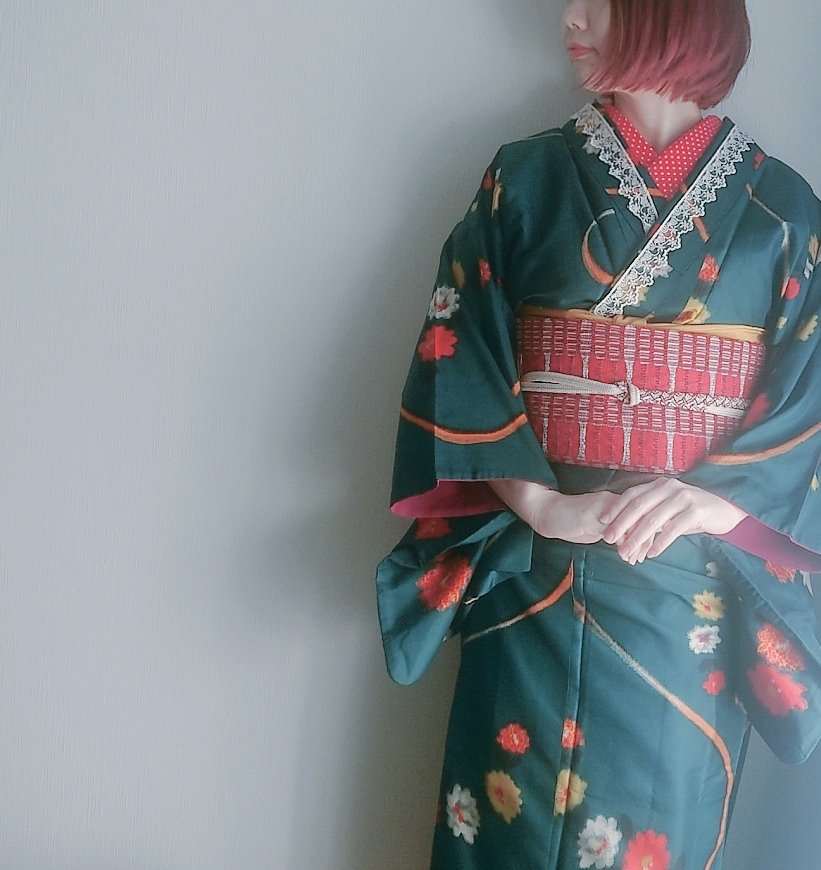 この銘仙一目ぼれして即買いしたやつ。クリスマスコーデにぴったりでした★