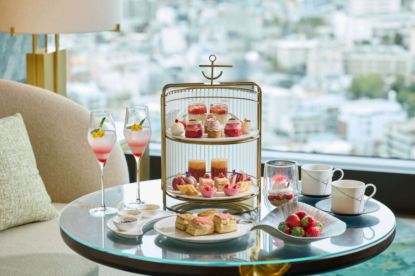 ウェスティンホテル横浜の『もっと恋するいちごアフタヌーンティー』では、いちごを主役にしながら、抹茶や水まんじゅうなど和のエッセンスを取り入れたスイーツが登場。いちごの華やかさに日本らしい素材や意匠を重ねた構成が特徴。時間帯によって趣を変えるセイボリーも用意され、多彩な表情のいちごを楽しめます。